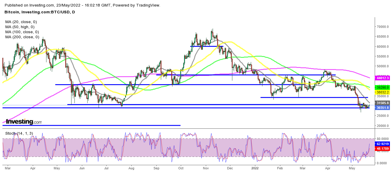 Bitcoin Daily Chart – Die Unterstützungszone um 29.000 $ hält