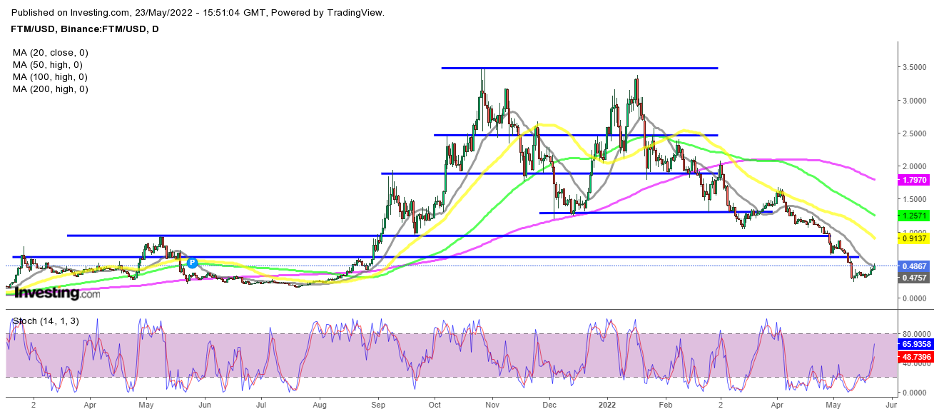 Aber wir haben gestern Gerüchte gehört, dass Andre Cronje, ein produktiver dezentraler Finanzdienstleister (DeFi)-Entwickler, kehrte zum Projekt zurück. Abgesehen davon hat die Nachricht, dass die Unterstützung von Pocket Network für die Fantom-Blockchain Node-Runner POKT verdienen kann, indem sie Verkehr von Fantom-Anwendungen, -Tools und -Diensten bedient, auch zu dieser Umkehrung beigetragen, aber mal sehen, ob es so weitergeht, da es viele Widerstandsstufen darüber gibt.
