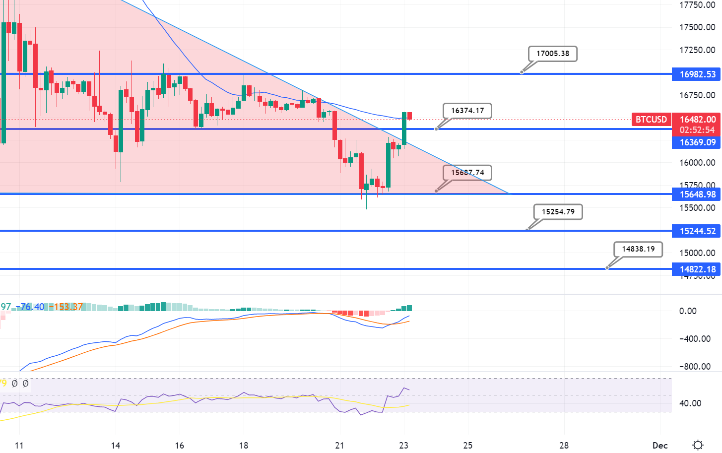 Auf der anderen Seite gibt es unmittelbare Unterstützung nahe der 15.900-Dollar-Marke.