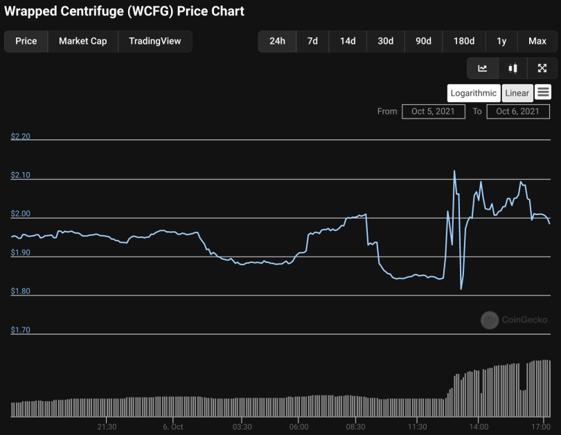 WCFG ist auch ein Ethereum-basiertes Token, das den Preis von Centrifuge (CFG) widerspiegelt.