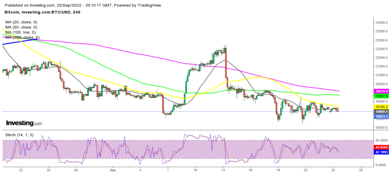 Bitcoin hat seit der Umkehrung von etwa 22.500 $ Anfang dieses Monats nach dem Start des Bitcoin weiterhin niedrigere Höchststände erreicht Ethereum Verschmelzen. Letzte Woche hielt der Verkaufsdruck an, da die Hochs immer tiefer wurden, wobei der 50 SMA (gelb) als Widerstand auf dem H4-Chart fungierte. Wir haben uns jedoch entschieden, ein Kaufsignal um 19.000 $ zu eröffnen, das diese Woche offen bleibt.
