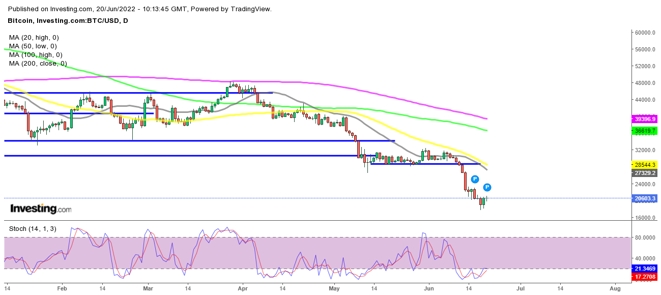 Aber die rückläufige Dynamik setzte sich Anfang dieses Monats wieder fort und am Samstag rutschte Bitcoin (BTC) auf rund 17.749 $ ab Ethereum (ETH) fiel auf unter 900 $, als sich der Ausverkauf auf dem Kryptomarkt beschleunigte. Die beiden beliebtesten Kryptomünzen sind letzte Woche irgendwann um mehr als 35 % gefallen, da beide die symbolischen Preisgrenzen von 20.000 $ bzw. 1.000 $ durchbrochen haben.
