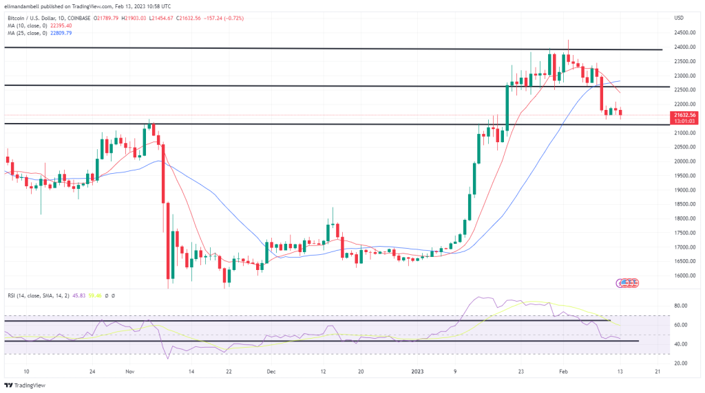 Ethereum begann die Woche mit dem Handel unter 1.500 $, da berichtet wurde, dass Paxos BUSD nicht mehr prägen wird. Dies hat zu einem Depegging der Stablecoin geführt und kommt dem bevorstehenden US-Inflationsbericht voraus, der ebenfalls zur heutigen Volatilität beiträgt. Bitcoin ist am 13. Februar gesunken, da die Preise nahe einem Dreieinhalb-Wochen-Tief bleiben.