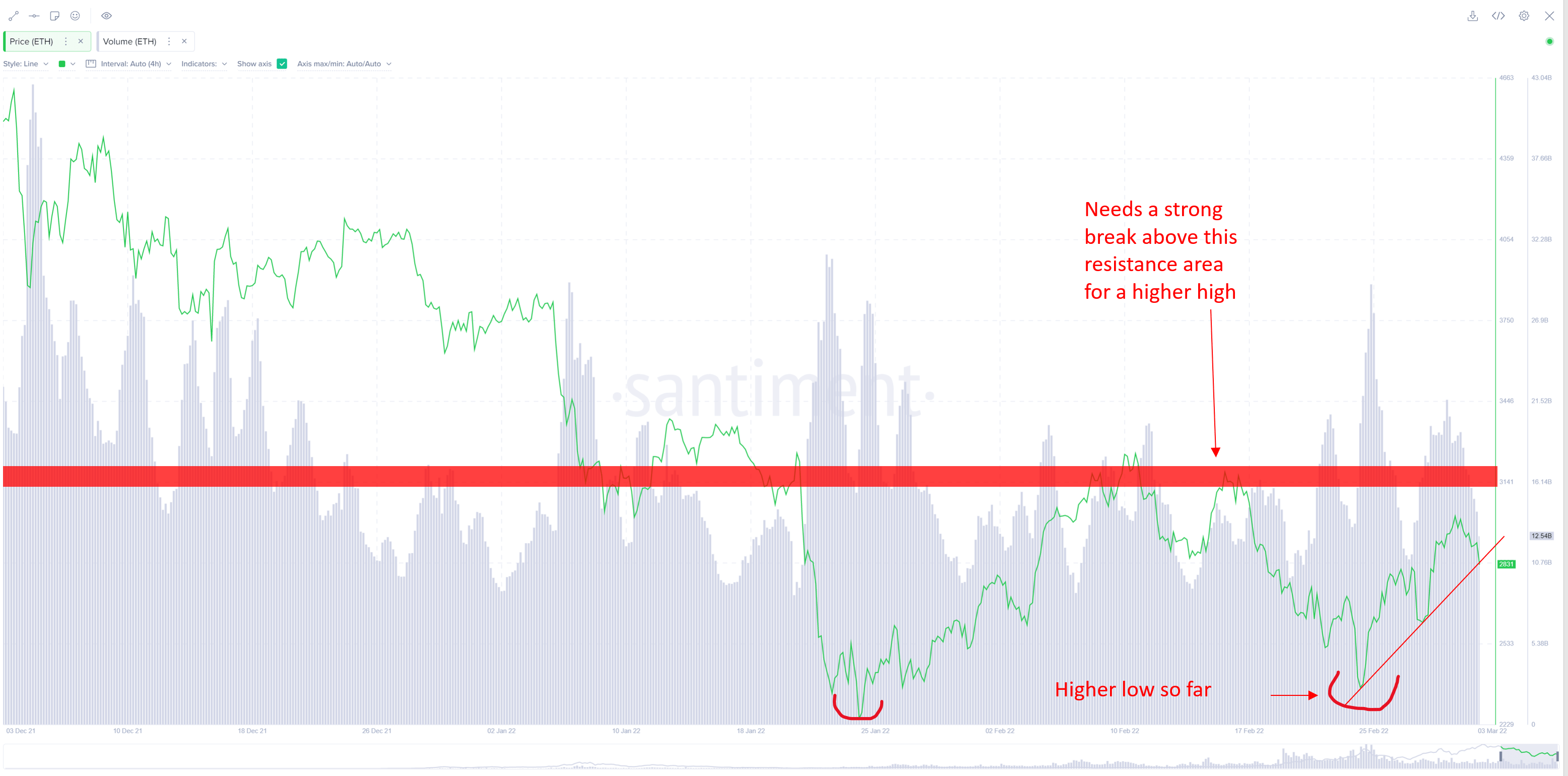 „Nach den Tiefstständen vom Januar 2022 hat der Februar bisher ein höheres Tief erreicht. Bullen hoffen besser, dass der Widerstand um 3100 – 3200 $ liegt [range] Pausen, um ein höheres Hoch für die weitere Fortsetzung zu etablieren.