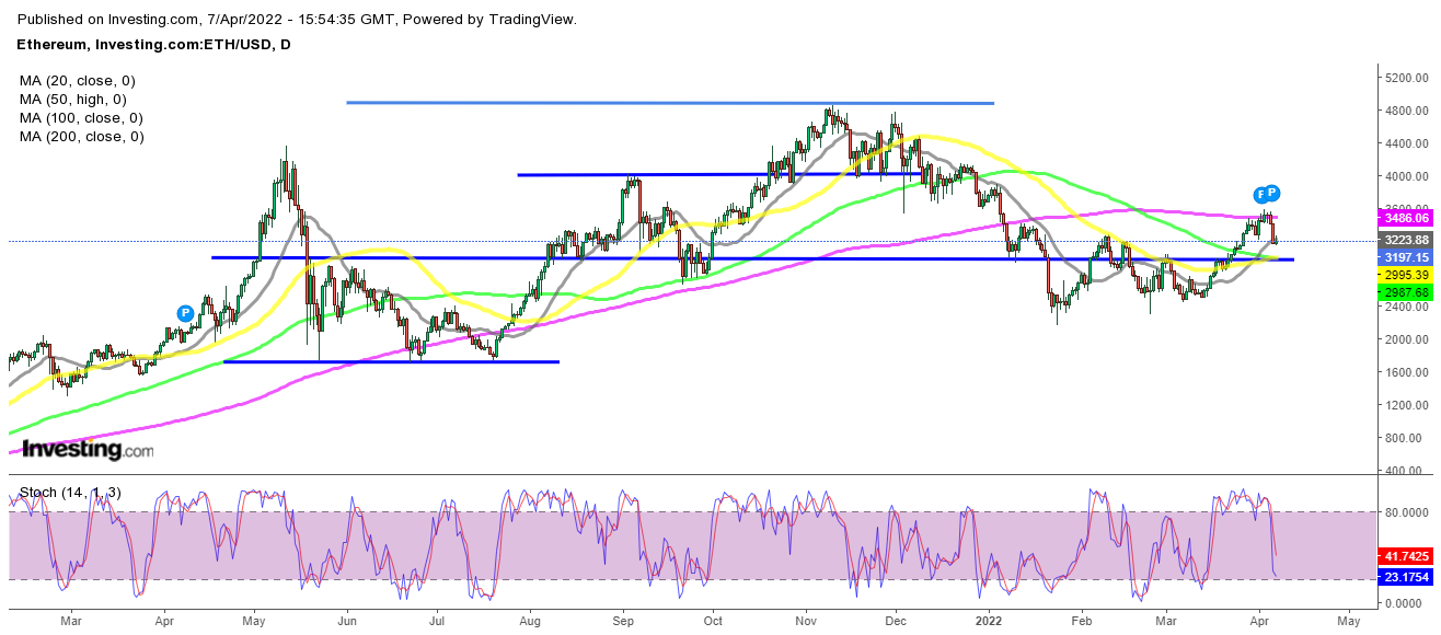 Ethereum ETH, Kadena Crypto KDA kehren um, nachdem sie die MAs nicht durchbrochen haben