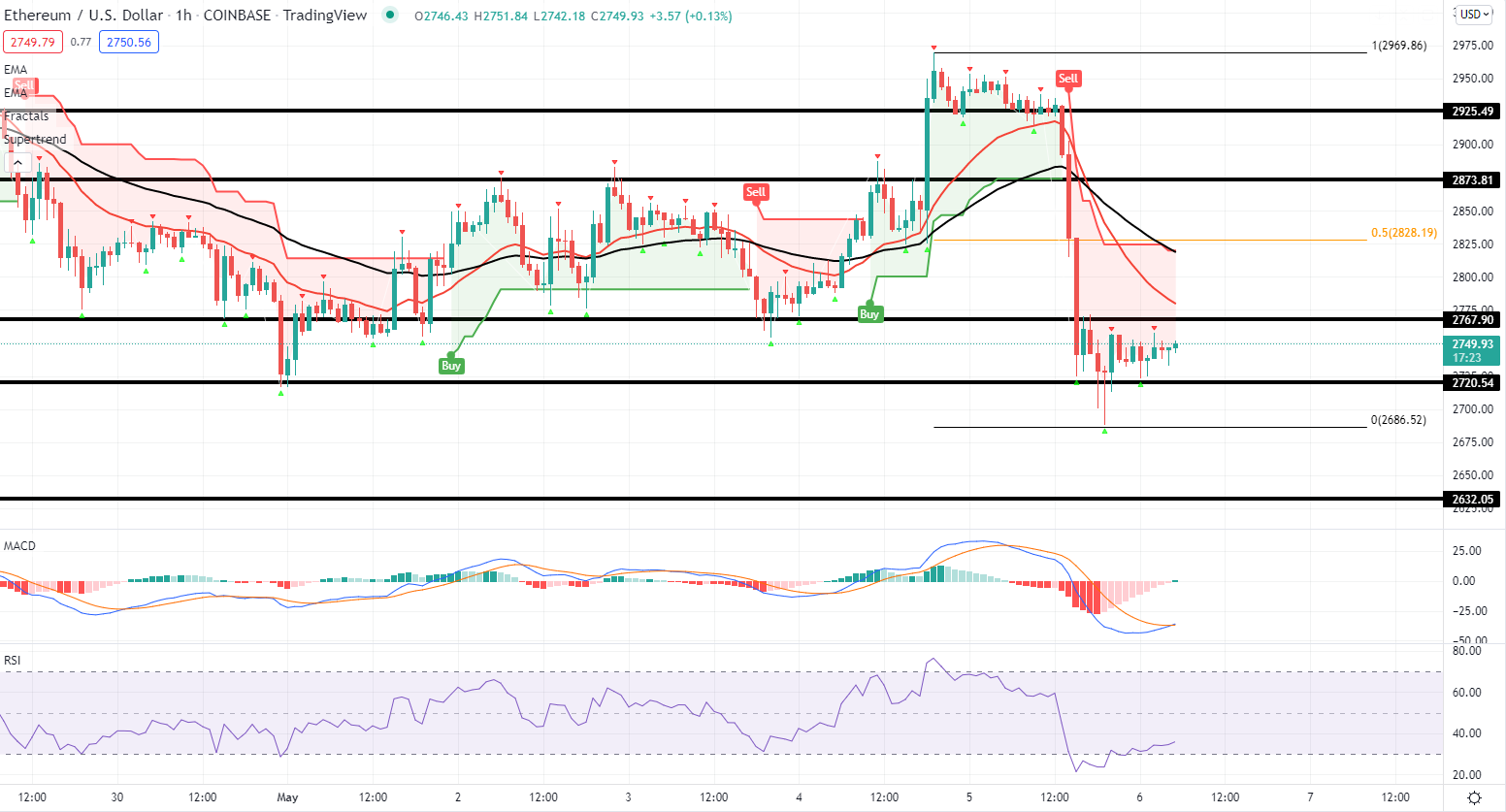 Schließlich gab es einen Anstieg unter das Unterstützungsniveau von 2.720 $. Ein Tief wurde bei 2.678 $ gebildet, und der Preis korrigierte einige Punkte. Es gab eine Erholungswelle über dem Niveau von 2.720 $. Der Preis kletterte sogar über das 23,6% Fib-Retracement-Level des jüngsten Rückgangs vom Hoch von 2.969 $ auf das Tief von 2.678 $.
