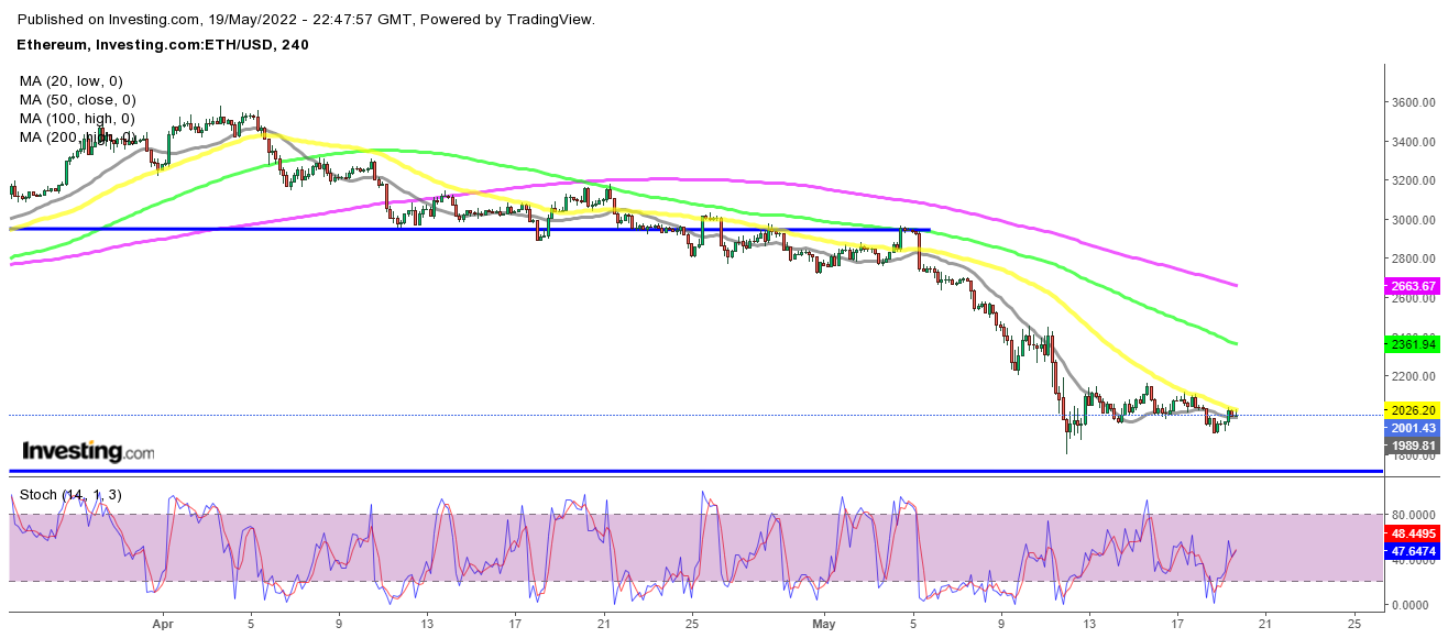 Obwohl wir seit letztem Donnerstag keine neuen Tiefststände gesehen haben, Ethereum hat versucht, höher umzukehren; aber der Markt scheint im Moment unentschlossen. Käufer haben gegen den 50 SMA (gelb) auf dem H4-Chart mit Köpfen geschlagen, aber der Versuch sieht immer noch schwach aus und diese Kryptowährungen müssen über den Widerstand drängen, aber im Moment sind diese Versuche nichtsdestotrotz eine positive Sache, also lassen Sie uns sehen, ob die Käufer das können weitere Gewinne erzielen.