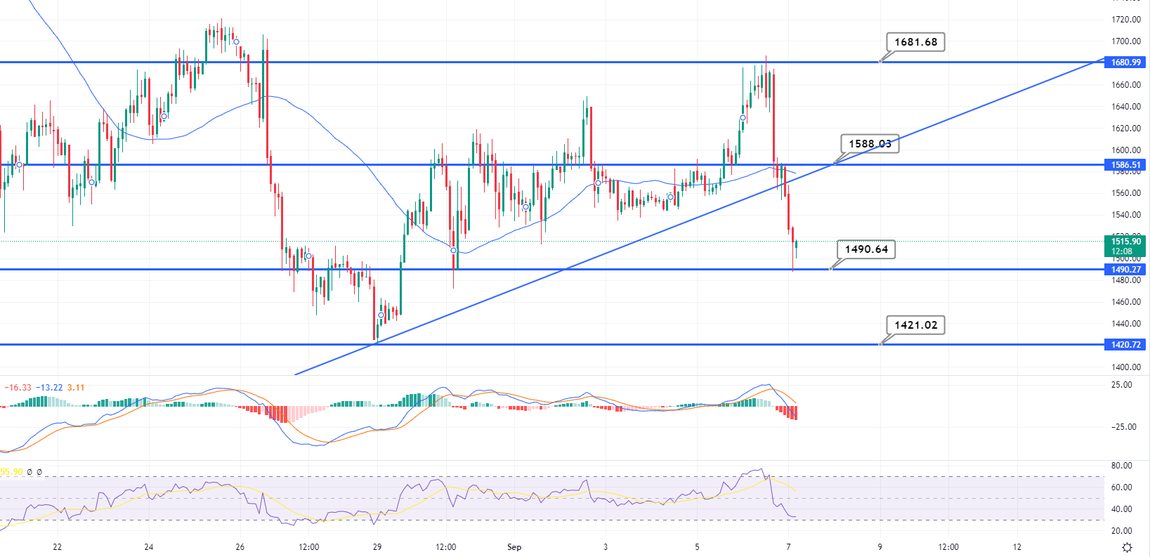 Es liegt nahe am 50% Fib-Retracement-Level des jüngsten Rückgangs vom Swing-Hoch von 1.686 $ auf das Tief von 1.490 $. Weitere Fortschritte könnten den Weg für eine Bewegung in Richtung des Widerstands von 1.620 $ in naher Zukunft ebnen.