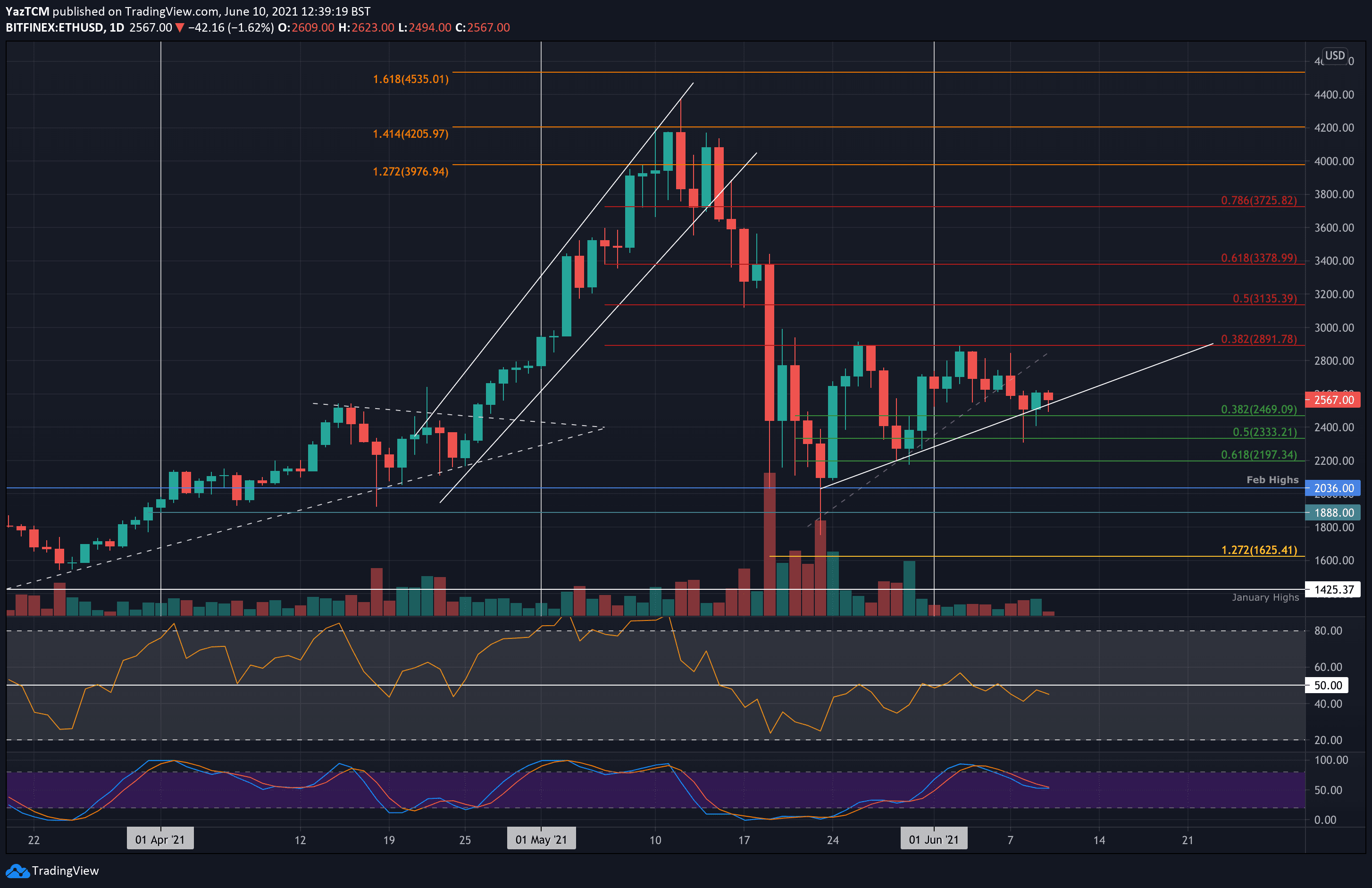 Wichtige Supportstufen: 2470 $, 2330 $, 2200 $.