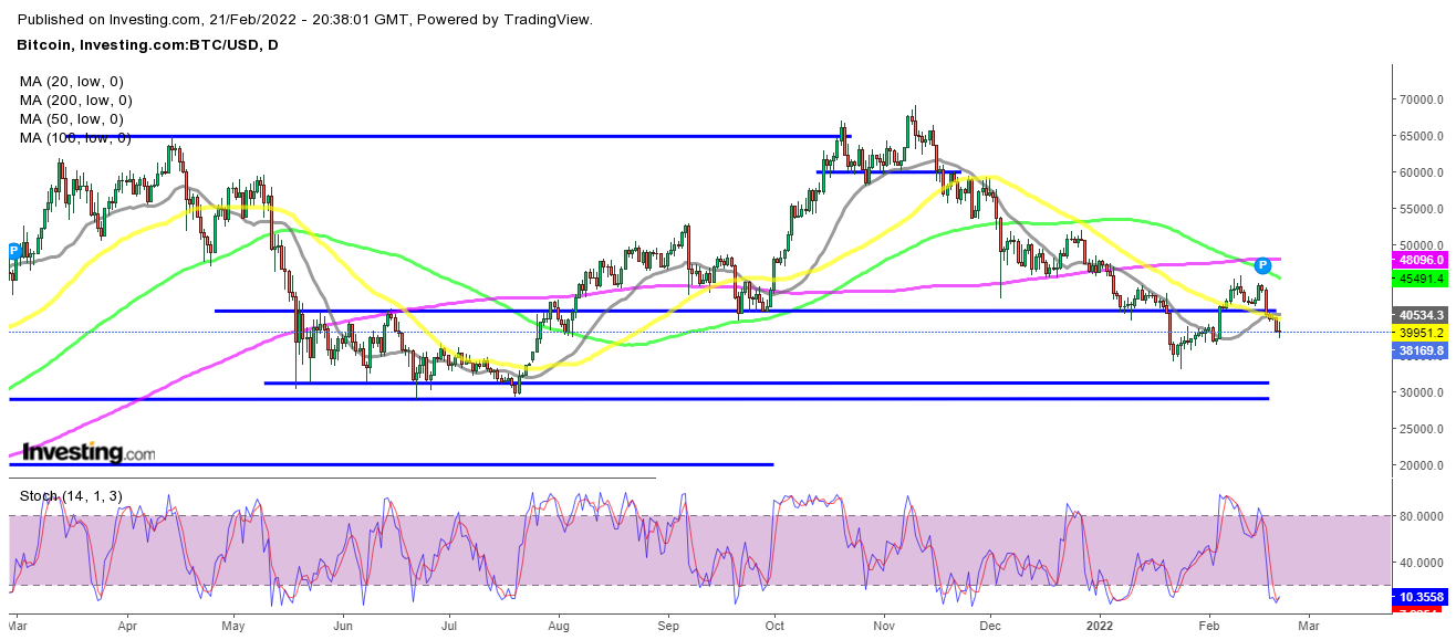 BTC ist ebenfalls unter die 40.000-Dollar-Marke gerutscht