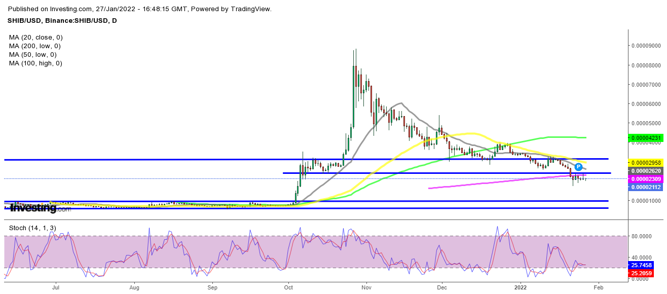 Die Unsicherheit auf dem Kryptomarkt bleibt hoch, da sie in diesen 2-3 Monaten des Rückgangs nicht in der Lage sind, einen anständigen Kampf zu führen. Die Rutschung hat in den letzten Tagen aufgehört, aber sie scheinen nirgendwo hinzugehen. Die Tatsache, dass die Zentralbanken restriktiv werden und das harte Vorgehen gegen Kryptowährungen anhält, belastet den Kryptomarkt. Shiba Inu bleibt in einem stetigen Abwärtstrend, während Fantom in einem Aufwärtstrend bleibt, aber es wartet auf eine Chance, den Aufwärtstrend nach dem Rückzug wieder aufzunehmen.
