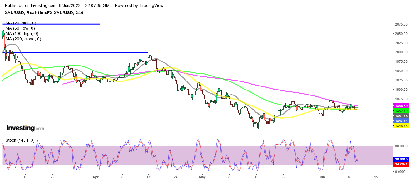 Gold wurde von Anfang Mai bis Mitte letzten Monats rückläufig, als der USD weiter nach oben stieg. Aber seitdem ist der Preis in einer Spanne auf und ab gestiegen. Gestern eröffnete mein Kollege Arslan hier beim 100 SMA (grün) ein Forex-Kaufsignal, nachdem er zuvor Widerstand geleistet hatte, aber der 200 SMA hielt den Preis gedämpft, da er erneut Widerstand bot.