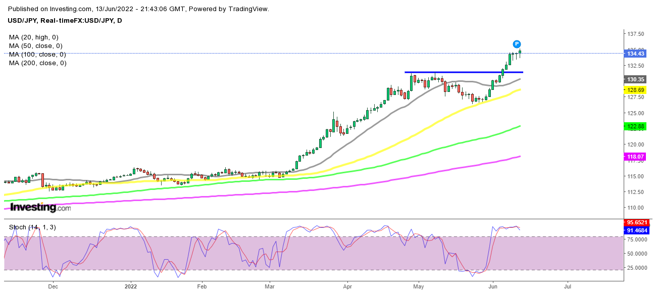 Wir bleiben für dieses Paar weiterhin zinsbullisch, da es seit zwei Jahren zinsbullisch ist, obwohl das zinsbullische Momentum seit März an Fahrt gewonnen hat, wobei die Tiefs höher wurden und es auf die Hochs von 2002 zusteuert. Seit März hat der Aufwärtstrend ein unglaubliches Tempo angenommen und der USD/JPY ist auf neue Höchststände gestiegen.