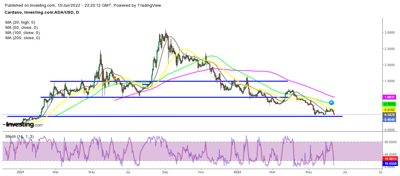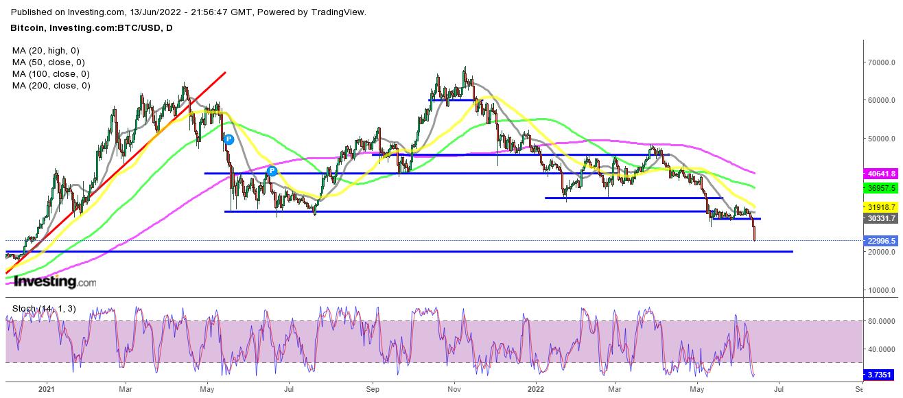 Bitcoin erreichte im April letzten Jahres fast 65.000 $, bevor das Durchgreifen gegen Kryptowährungen begann und im November einen neuen Höchststand von knapp 70.000 $ erreichte. Aber seitdem ist der Trend rückläufig und es scheint, als ob BTC die fünfte Welle des Elliot vervollständigt Wave Muster, das ist das letzte. Es sieht also so aus, als ob BTC auf 20.000 $ zusteuert, und wir werden die Preisbewegung dort beobachten, um zu sehen, ob dieses wichtige Niveau halten wird.
