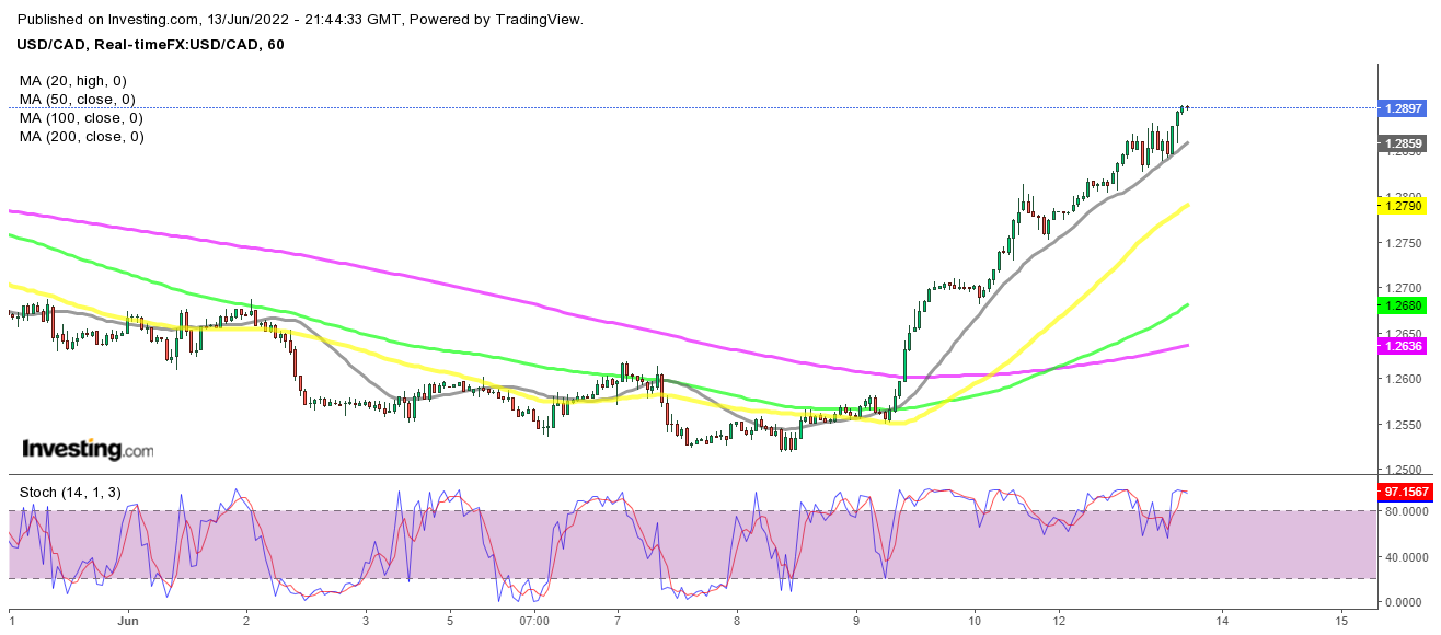 Der USD/CAD befindet sich seit einem Monat in einem rückläufigen Trend, aber Ende letzter Woche sahen wir eine Umkehrung um 1,25 und bis jetzt ist dieses Paar um 4 Cent gestiegen. Der Aufwärtstrend war sehr steil, wie der 20 SMA (grau) zeigt, der während dieses Anstiegs als Unterstützung fungierte. Gestern eröffnete mein Kollege ein Kaufsignal bei diesem gleitenden Durchschnitt und verbuchte einen Gewinn, als der Preis davon abprallte.