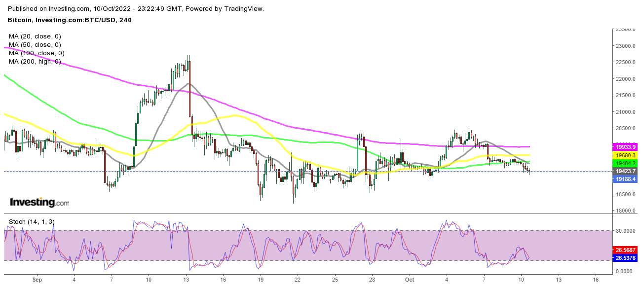Bitcoin wird weiterhin in einer Spanne gehandelt, meist unter 20.000 $, bewegt sich aber zeitweise auch über dieses Niveau, wobei der 200 SMA (lila) als Widerstand an der Spitze fungiert. Obwohl Wither Side den Willen hat, den Preis zu weit von 20.000 $ zu entfernen. Am Mittwoch sahen wir eine zinsbullische Bewegung und Käufer stiegen über die 200 SMA, die sich nun seit einiger Zeit in eine Unterstützung verwandelt hat, aber sie durchbrach diesen gleitenden Durchschnitt, als der USD an Schwung gewann. Aber das ist gut, da wir versuchen, BTC in der Nähe der Tiefststände über 18.500 $ zu kaufen.
