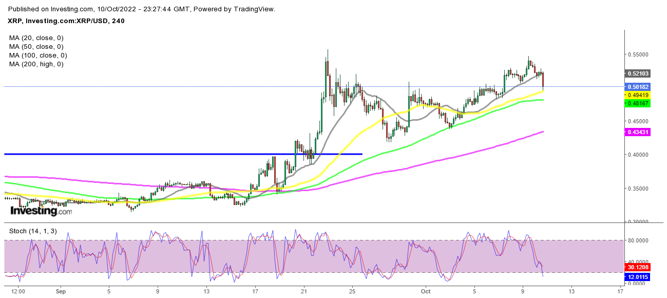 Ripple ist seit Mitte letzten Monats zinsbullisch und stieg letzte Woche über 0,50 $, als die Klage gegen die SEC einige Entwicklungen mit sich brachte. Der Preis ist zurückgegangen, sodass das zinsbullische Momentum ein paar Mal nach unten abgeflacht ist, aber der 20 SMA (grau) hat sich in eine Unterstützung verwandelt und hält den Preis, während der 200 SMA (lila) sich für einige Zeit in einen Widerstand verwandelt hat. Obwohl wir letzte Woche einen Ausbruch aus dem Dreieck nach oben gesehen haben, hält das zinsbullische Momentum an.
