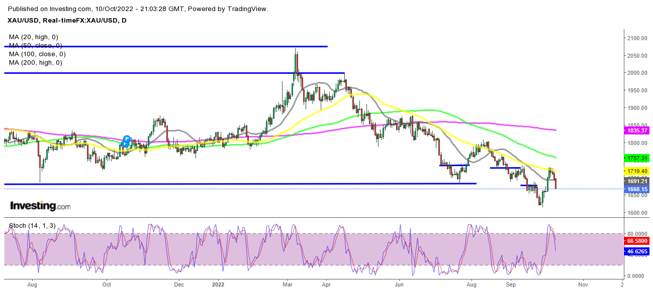 Letzte Woche nahm der USD das zinsbullische Momentum wieder auf, nachdem er sich mehr als eine Woche zurückgezogen hatte, und gestern sahen wir eine Fortsetzung dieses Marktmomentums. Die Märkte waren aufgrund des Feiertags Columbus Day geschlossen, daher kamen keine Wirtschaftsmeldungen aus den USA. Die US-Aktienmärkte waren jedoch geöffnet, was auch den Rückgang fortsetzte, den sie letzte Woche begonnen hatten.