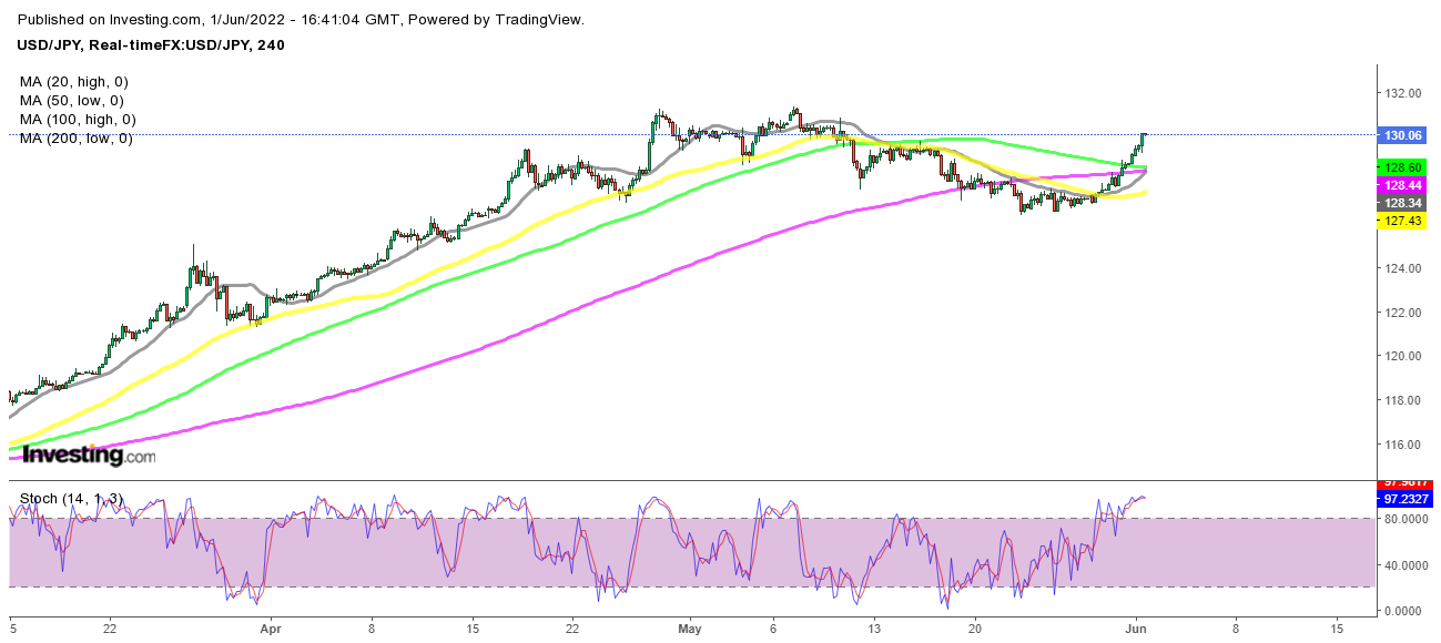 Der USD/JPY befindet sich seit zwei Jahren in einem Aufwärtstrend, aber im März nahm der Aufwärtstrend ein unglaubliches Tempo an, als der Konflikt in der Ukraine eskalierte und dieses Paar über 131 stieg. Wir haben im März und April viele Kaufsignale eröffnet, aber letzten Monat sahen wir einen Pullback. Obwohl der Pullback jetzt vorbei ist und wir bei diesem Paar wieder optimistisch sind, nachdem sich der Preis über die gleitenden Durchschnitte bewegt hat. Wir haben gestern ein Kaufsignal eröffnet und schließlich einen Gewinn verbucht, als der Preis über 130 kletterte.