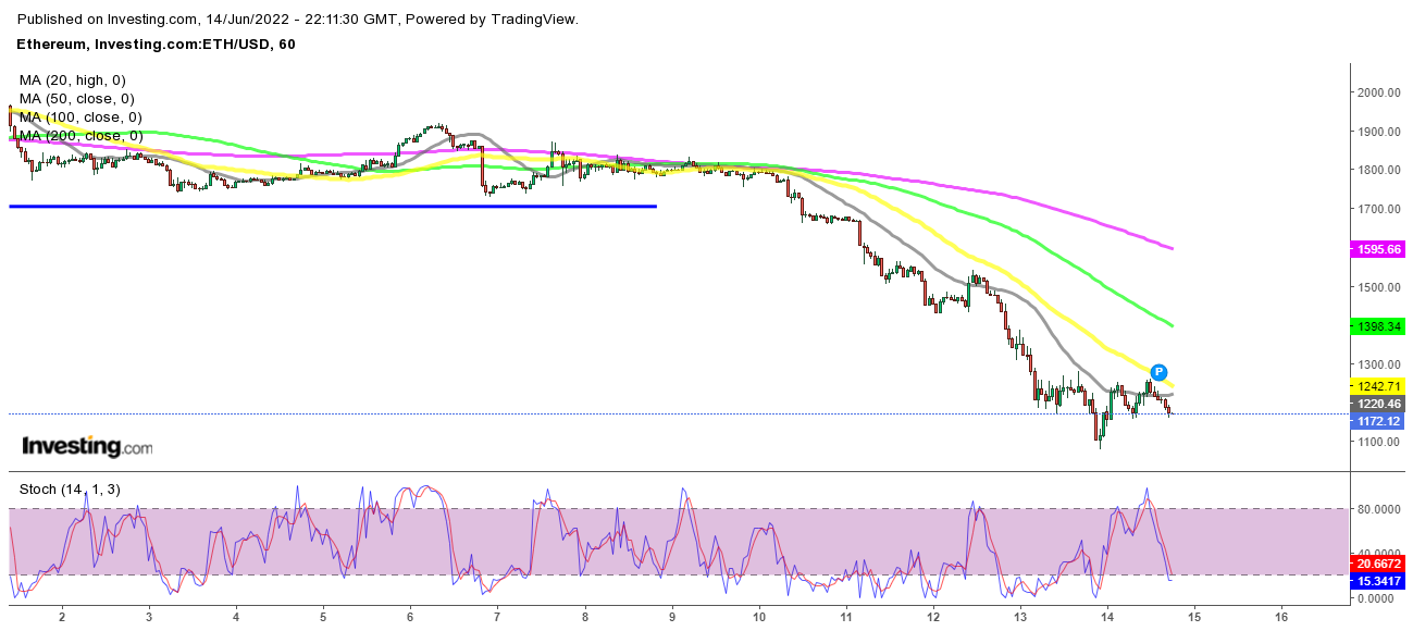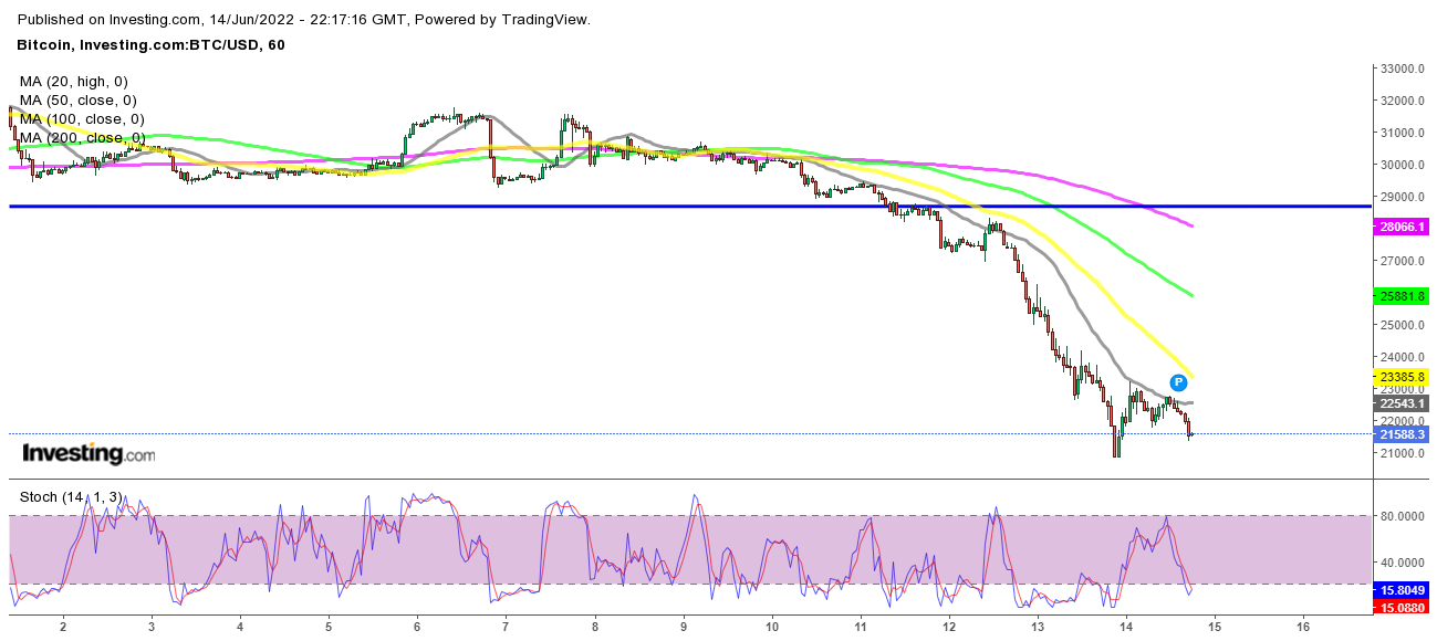 Kryptowährungen haben den Rückgang wieder aufgenommen, nachdem sie sich seit Anfang Mai etwa einen Monat lang konsolidiert hatten, und sie sind unter einige wichtige Unterstützungsniveaus gefallen. Ethereum, wo wir gestern zwei Krypto-Signale eröffnet haben, bewegt sich auf die 1.000 $ zu und wird sie vielleicht brechen. Die 20.000 $ sind beim ersten Versuch in Bitcoin geblieben, aber der Preis kehrt zu ihm zurück, sodass die Situation ziemlich bärisch aussieht.