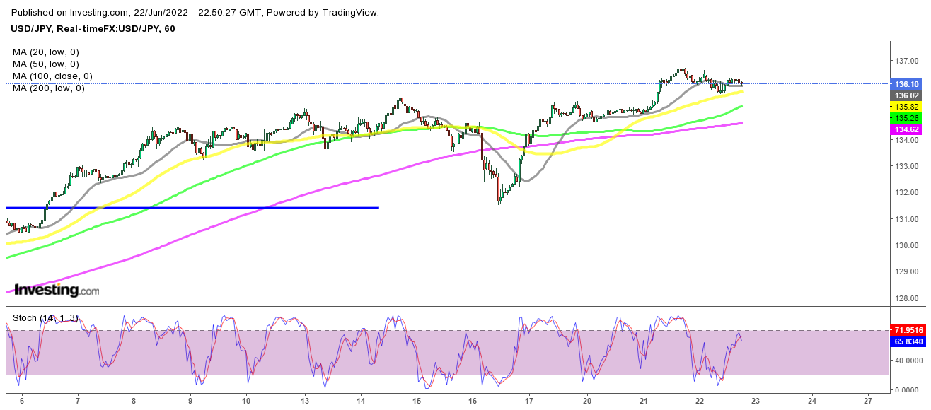 Wir sind für USD/JPY seit langem optimistisch und bleiben dies auch weiterhin, da die Stimmung für den JPY zurückhaltend bleibt, was dieses Paar nach oben treibt. Anfang dieser Woche sahen wir neue Höchststände, als sich der Preis 137 näherte, und gestern entschieden wir uns, ein weiteres Kaufsignal zu eröffnen, das mit Gewinn schloss, als dieses Paar vom 50 SMA (gelb) auf dem H4-Chart abprallte.
