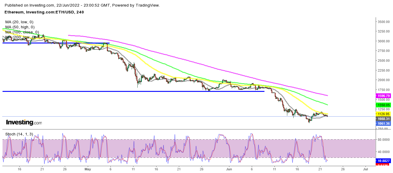 Ethereum ist in den letzten Monaten abgestürzt und ist letzte Woche unter 1.000 $ gefallen, obwohl wir eine schnelle Umkehrung und eine Bewegung über dieses wichtige Niveau gesehen haben. Aber die Fortsetzung seit Sonntag war schwach und der 50 SMA (gelb) wurde zum Widerstand, also eröffnete mein Kollege Arslan einen Verkauf Ethereum Signal dort, das im Gewinn schloss, als der Preis wieder nach unten drehte.