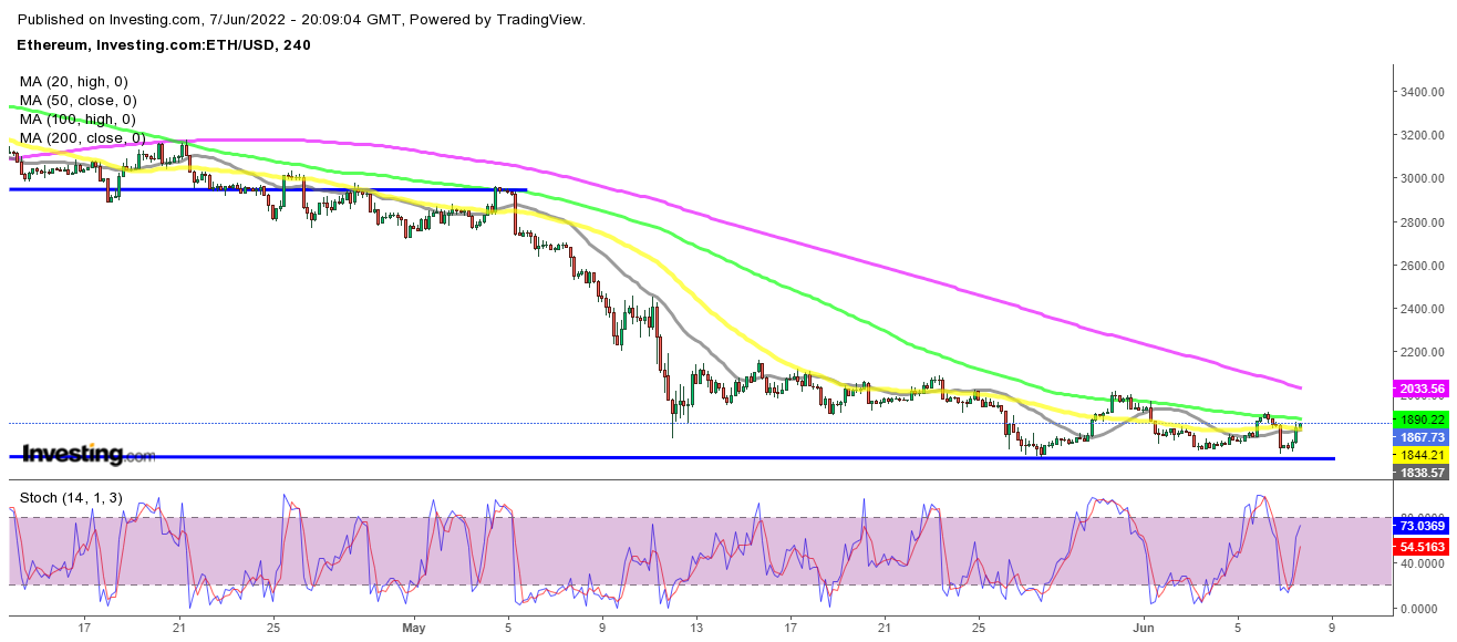 Nach dem Rückgang Anfang März, als Terra LUNA kapitulierte, wurden Kryptowährungen in einer Spanne gehandelt, mit Ethereum die Bodenbildung in der vorherigen Unterstützungszone über 1.700 $ zu finden. Obwohl die Höhen für immer niedriger geworden sind Ethereum, da gleitende Durchschnitte den Preis weiter nach unten drücken. Dies könnte in beide Richtungen gehen, also warten wir ab, in welche Richtung der Ausbruch gehen wird, und handeln ihn vielleicht.