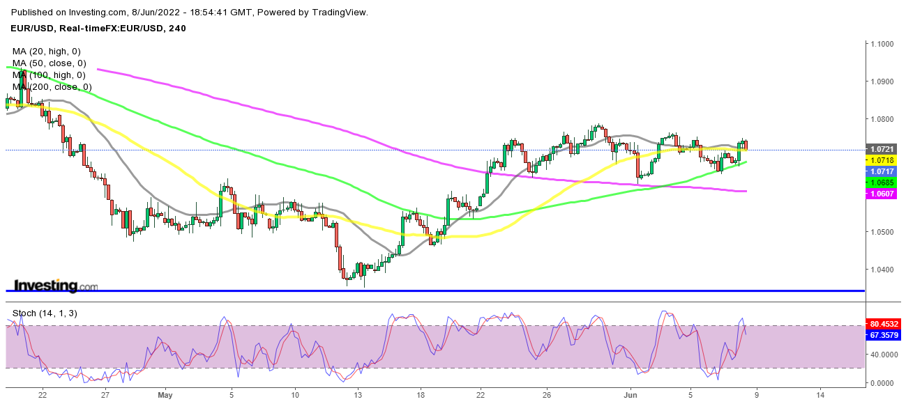 Heute halten die US-Arbeitslosenansprüche und der Gouverneur der Bank of Canada, Macklem, eine Rede in der US-Sitzung, obwohl das große Ereignis heute die Sitzung der Europäischen Zentralbank ist. Es wird nicht erwartet, dass die EZB bei dieser Sitzung die Zinsen erhöht, aber sie wird einen Plan für die Zukunft der Zinserhöhungen vorlegen, wobei die Märkte eine Zinserhöhung um 50 BPS im Juli vollständig einpreisen. Obwohl das Interesse an der Politik nach der Juli-Wanderung liegt, wird die Pressekonferenz wichtig sein.