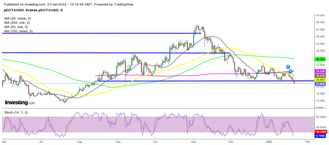 Der 20-Tages-SMA drückt Polkadot unter den Unterstützungsbereich