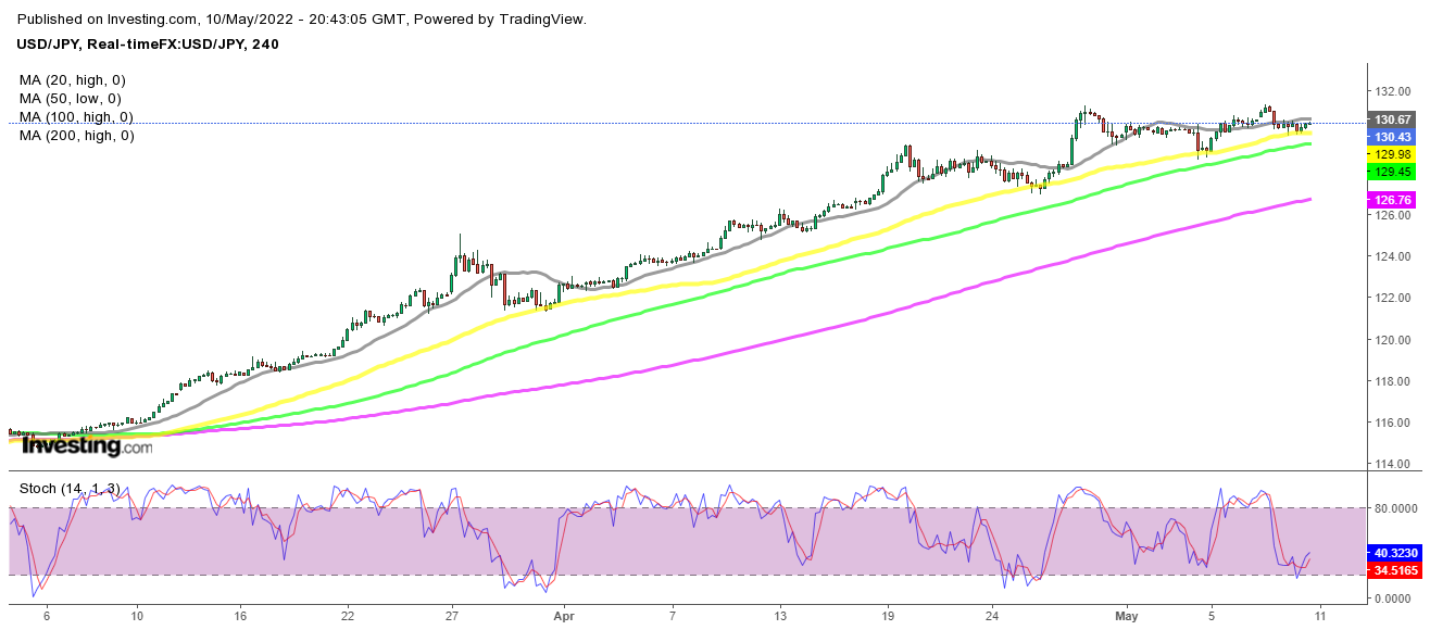 Gestern haben wir uns entschieden, dieses Paar nach dem Rücklauf auf den 50 SMA (gelb) zu kaufen. Wir haben gekauft USD/JPY da es sich seit langem in einem starken Aufwärtstrend befindet und der Kaufdruck im letzten Monat nach Beginn des Konflikts in der Ukraine stark zugenommen hat, als der JPY als sicherer Hafen hätte aufwärts gerichtet sein sollen und dieses Paar rückläufig. Unser Signal schloss nach der Umkehr des 50 SMA im Gewinn.
