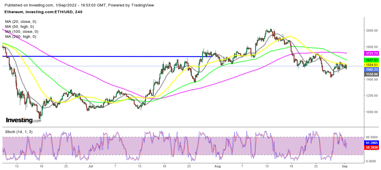 Ethereum war eine der zinsbullischsten Kryptomünzen während der zinsbullischen Periode bis Juli und fand Unterstützung bei den gleitenden Durchschnitten auf dem H4-Chart, da sie sich Anfang August wieder nach oben bewegte. Aber die rückläufige Dynamik auf dem Kryptomarkt hat ETH/USD unter diese gleitenden Durchschnitte geschickt. Obwohl der 20 SMA (grau) Unterstützung bietet Ethereumes sieht also so aus, als würden Käufer diese MAs bald übersteigen.