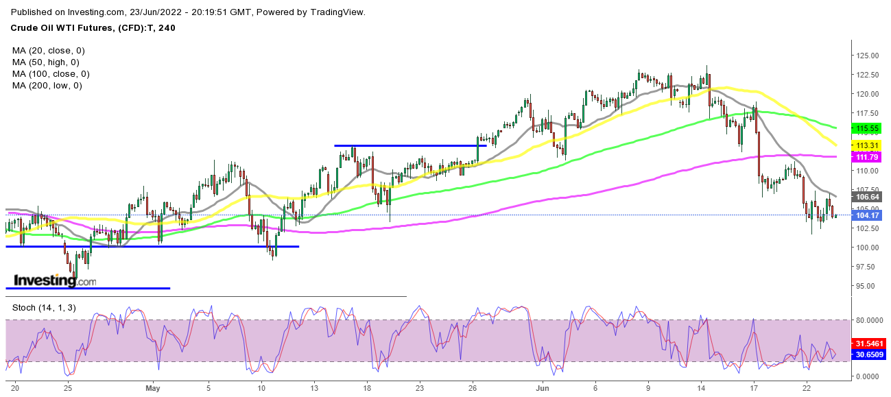 Rohöl hat seit letzter Woche eine steile Trendwende vollzogen, insbesondere am Freitag, als es um die 10 $ abstürzte. Wir haben versucht, während dieser Umkehrung Trades auszuwählen, indem wir Retracements zum 20 SMA (grau) auf dem H4-Chart verkauft haben. Anfang dieser Woche verkauften wir WTI Oil zu diesem gleitenden Durchschnitt, während wir gestern ein weiteres Verkaufssignal eröffneten, das ebenfalls mit Gewinn schloss.