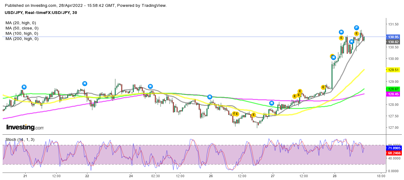 Die spanische CPI-Inflation zeigte diesen Monat eine kleine Abkühlung von 9,8 % im März, aber in Deutschland stieg die Inflation im April weiter an, sodass die Preise ziemlich hoch bleiben, was die Wirtschaft behindern wird, was wir heute sehen werden, wie sie es in den USA im Laufe des Jahres getan hat Q1. Die US-BIP-Vorabdaten für Q1, die in der US-Session veröffentlicht wurden, sollten ein Wachstum von 1,1 % aufweisen, zeigten aber stattdessen einen Rückgang von -1,4 %. Nichtsdestotrotz erholte sich der USD weiter und scheint nicht aufzuhören.