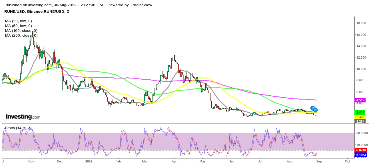 THORChain erlebte Anfang dieses Jahres einen ordentlichen Absturz, aber im März sahen wir auch einen ordentlichen Aufschwung. Obwohl das rückläufige Momentum wieder aufgenommen wurde und RUNE coin fiel auf 2,40 $. Wir haben uns entschieden, ein Kaufsignal zu eröffnen RUNE/USD als der Kaufdruck zurückkehrte, aber er war ziemlich schwach und an den letzten beiden Wochenenden ist diese Kryptowährung unter 2 $ gefallen.