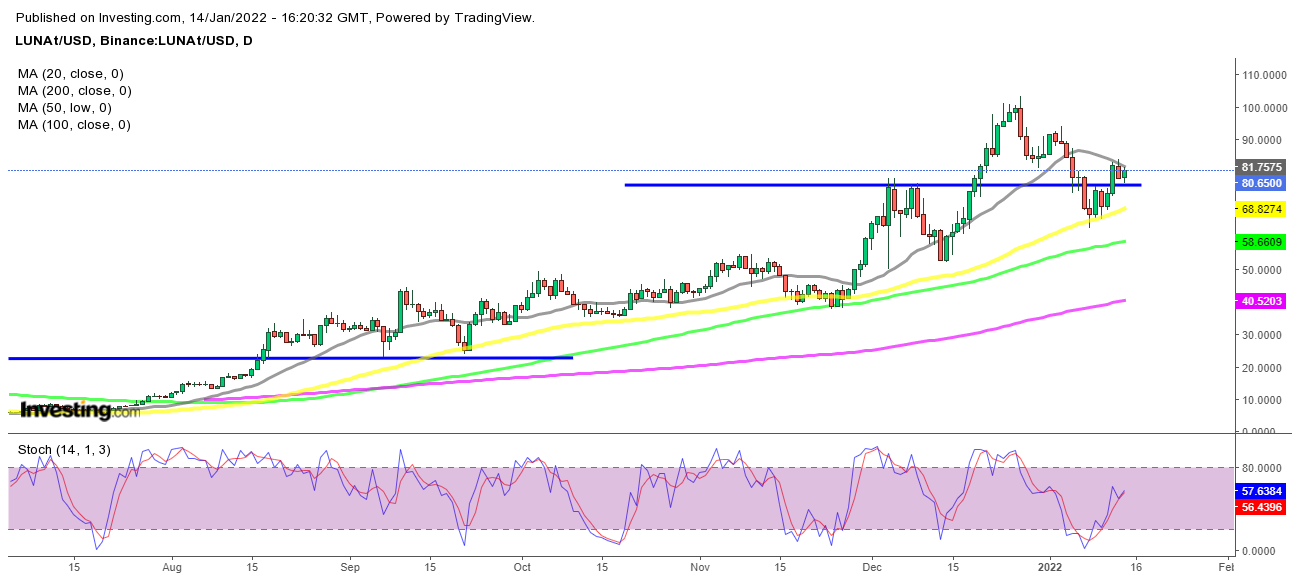Es scheint, als würden Kryptowährungen diese Woche versuchen, sich zu wehren, nachdem sie den Rückgang letzte Woche fortgesetzt haben. Die meisten großen Kryptos erreichten einige große Unterstützungsniveaus, wobei Bitcoin währenddessen 4.000 $ erreichte Ethereum erreichte 3.000 $. Die Verkäufer haben also das Ziel erreicht und jetzt könnte die bullische Umkehrung im Gange sein. Litecoin hat das Unterstützungs-/Widerstandsniveau überschritten, das wir gestern hervorgehoben haben, während Terra LUNA coin ist gewesen