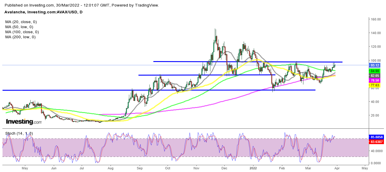 Avalanche Tages-Chart – AVAX bleibt am Widerstand unter 100 $