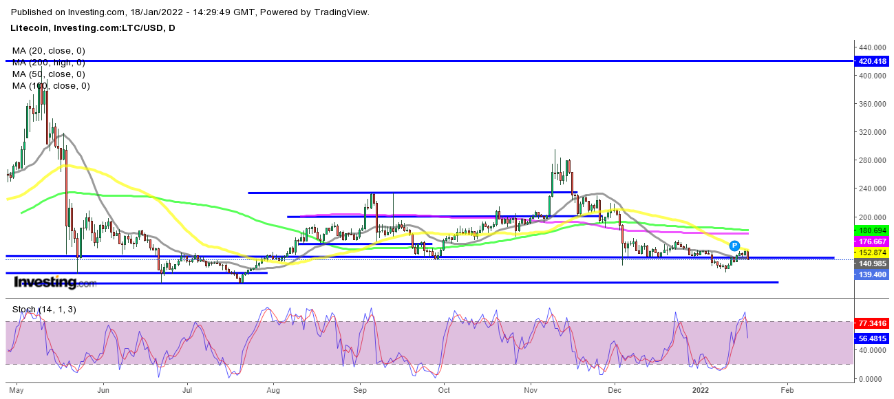 LTC fällt erneut unter die Unterstützung bei 140 $