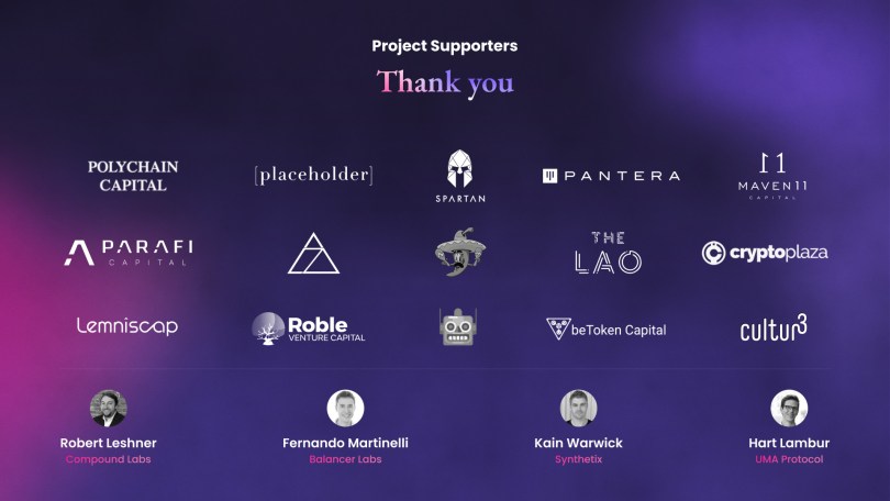 Das Projekt weckte das Interesse erfahrener DeFi-Parteien wie Polychain, Placeholder, Pantera, Maven 11, The LAO, MetaCartelVentures, ParaFi, Spartan, Robert Leshner und Tarun Chitra, Fernando Martinelli, Synthetix-Gründer, Crypto Plaza, Roble VC, CULTUR3, Lemniscap, Zee Prime und beToken Capital, neben anderen renommierten Parteien in DeFi.