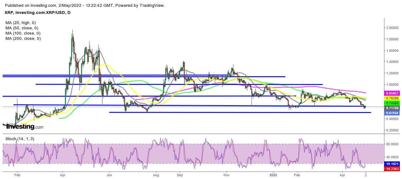 Kryptowährungen sind wieder rückläufig geworden, nachdem es so aussah, als hätten sie die rückläufige Phase, die im November begann, hinter sich gelassen, da sie im März einige ordentliche Gewinne erzielten. Cardano (ADA) und Ripple (XRP) gelang es schließlich nicht, zinsbullisch zu werden, und sie kehrten im April um, als die Stimmung im letzten Monat rückläufig wurde. Sie sehen sich jetzt Unterstützung gegenüber und der Rückgang auf dem Kryptomarkt ist ins Stocken geraten, also lassen Sie uns sehen, ob sie höher oder weiter niedriger drehen können.
