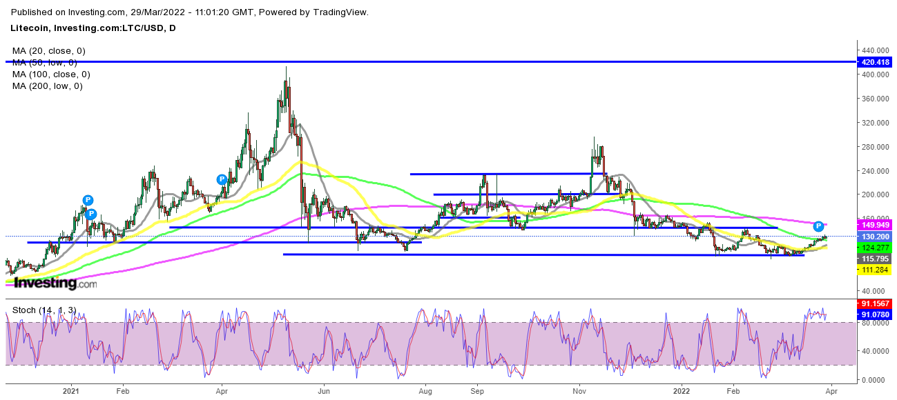 Litecoin-Tageschart – LTC auf dem Weg zum 140-Dollar-Widerstand