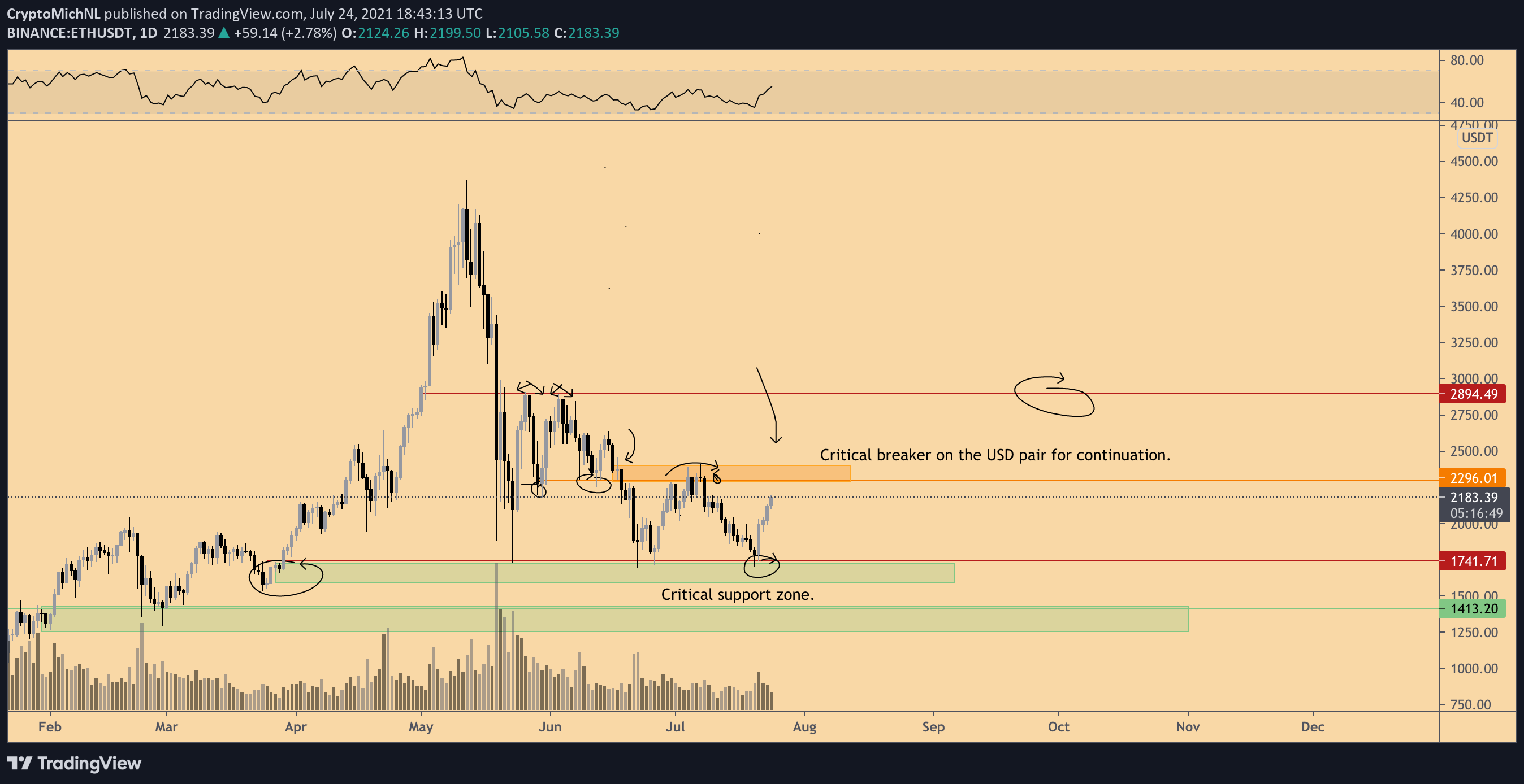 „Die Unterstützung für Ethereum wurde wieder einmal gehalten, also nähert es sich der anderen Seite der Spanne und dem entscheidenden Breaker, bevor eine Fortsetzung auf 3.000 US-Dollar erfolgen könnte.“