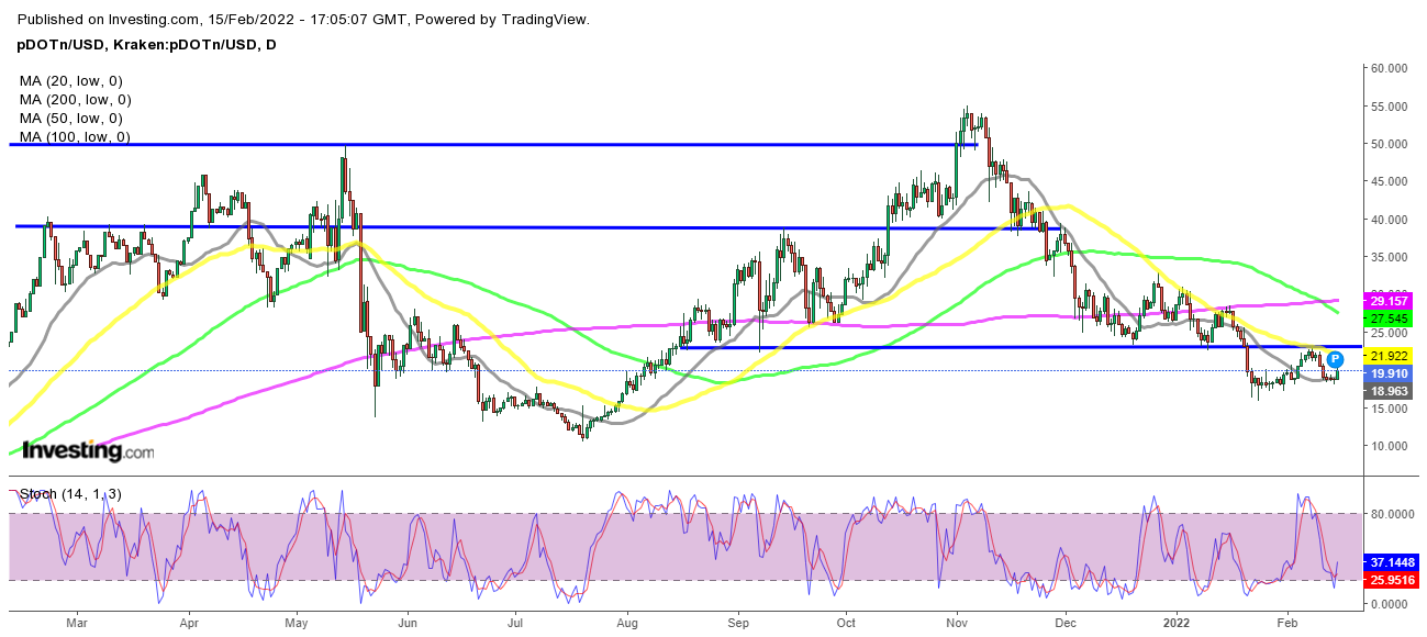 Jetzt liegt der Preis seit November unter dem 50-Tages-SMA, und der jüngste Versuch, ihn Anfang dieses Monats zu überschreiten, schlug fehl, wie die davor. Allerdings kehrt Polkadot jetzt ziemlich schnell nach oben um, was darauf hindeutet, dass die rückläufige Phase vorbei sein könnte und Käufer den Preis bald über die 50 SMA treiben werden.