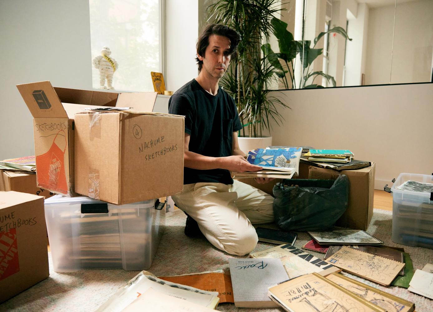 Am 6. Juni sortiert Danny Miller, Sohn des Malers Nachume Miller, in seinem Büro in New York die Skizzen seines Vaters, die eine Lagerhausüberschwemmung überstanden hatten. REED YOUNG /The New York Times